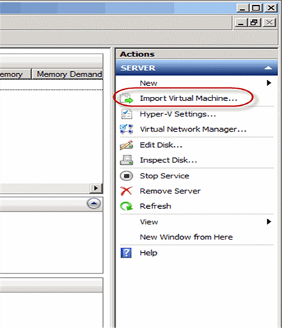 Back in Hyper-V manager console click the link Import Virtual Machine in the Actions pane.