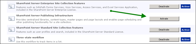 Site Actions > Site Settings. On the Site Settings page in the Site Collection Administration column choose Site Collection Features.