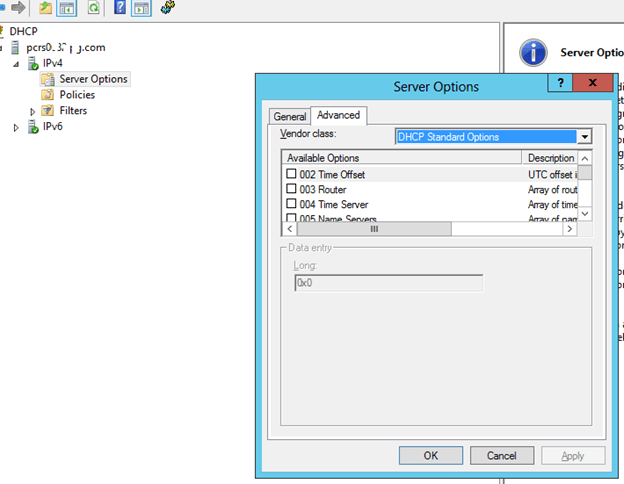 DHCP 2012 doesn’t have the user class option instead there are policies