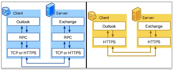 On the right, you can see how MAPI over HTTP replaces the dependency on RPC by directing the remote operations executed by Outlook across HTTP connections. This is different than RPC over HTTP because the RPCs used to carry MAPI instructions (wrapped in TCP/IP or HTTP packets) are no longer used. Instead, the MAPI instructions are sent directly over an HTTP link, which is what most Internet applications use to convey their data.