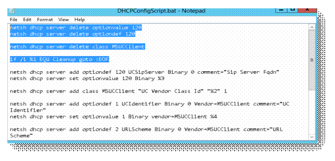 - In my case I had to remove the delete values as from the batch file located at C:\Program Files\Common Files\Microsoft Lync Server 2013. I then copied to my DHCP server. I deleted the highlighted options below.