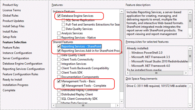 - If you do not already have an instance of SQL Server Database Engine, you could also select Database Engine Services and Management Tools Complete for a complete environment.