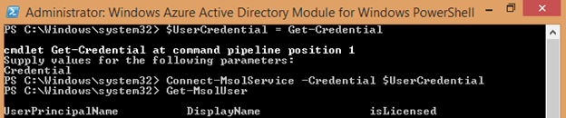 After Step 3, if you don’t receive any errors, you connected successfully. A quick test is to run an Office 365 cmdlet—for example, Get-MsolUser—and see the results.