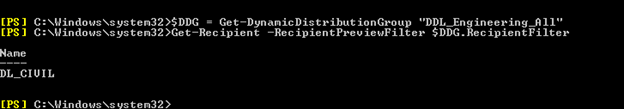 Get-Recipient -RecipientPreviewFilter $DDG.RecipientFilter