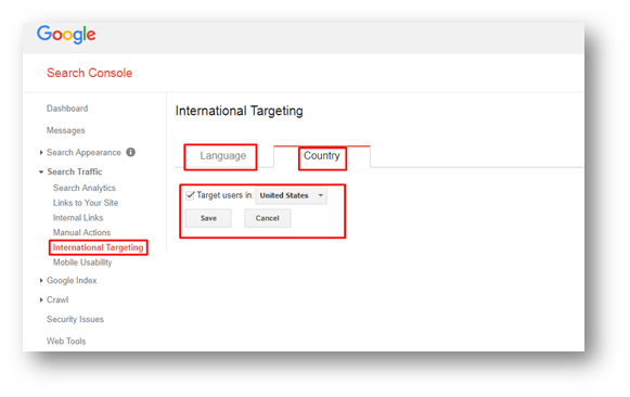 Domains that are not associated with specific locations. If your site has a generic top-level domain such as .com, .org, and wants to target users in a particular geographic location, you should set a country target.
