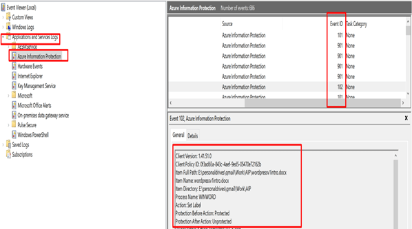 The client logs user activity to the local Windows event log Applications and Services Logs
