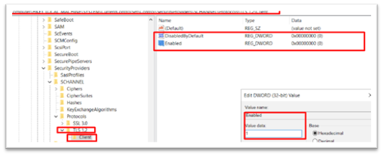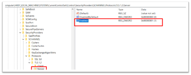 - Enable TLS 1.1 and TLS 1.2 from the registry
