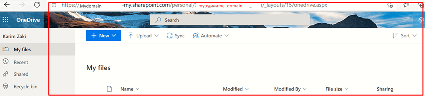 For example, https://yourdomain-my.sharepoint.com/personal/user1_contoso_com
