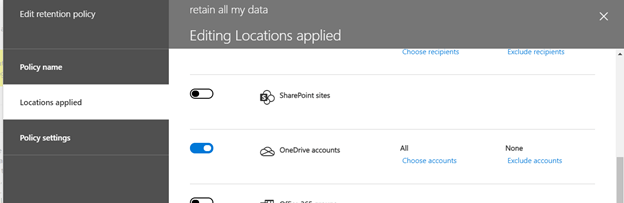 In the following examples we will give a brief about the retention policy scenarios for OneDrive For business.