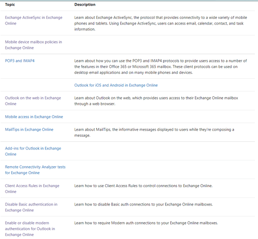 Clients and mobile in Exchange Online | Microsoft Docs
