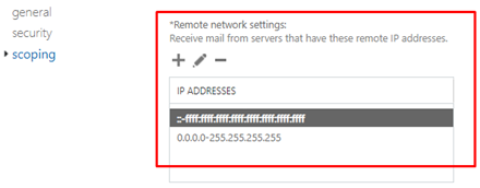 Also, we want to limit from where the mail shall be sent, from which device, so we will narrow the remote IP settings in the scope